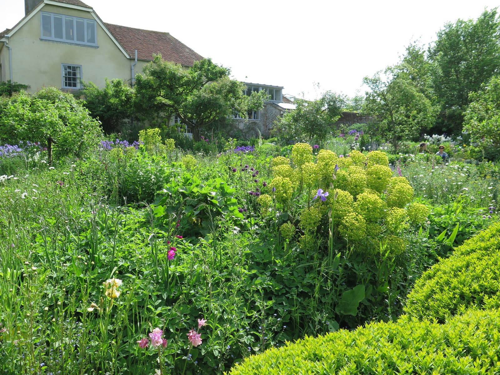 This is a great view of the back of the house through the garden; Duncan Grant's studio is on the right with all the windows.